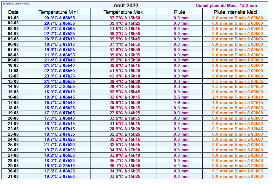 Le mois de Août 2022